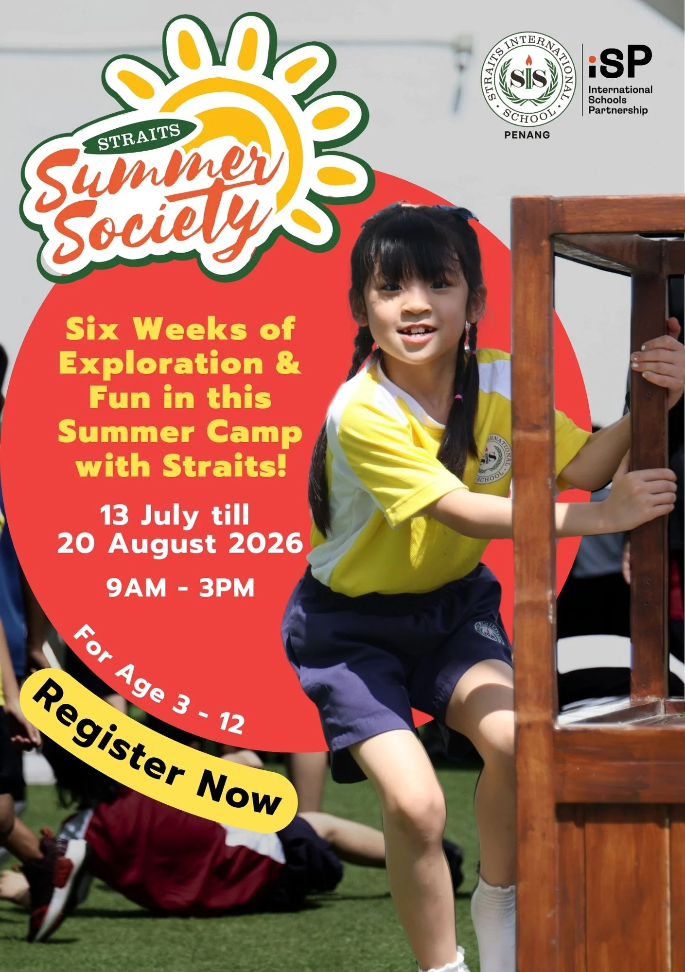 Straits Summer Society 2026 brings six exciting weeks of exploration, creativity and discovery for children aged three to 12 at Straits International School Penang.This vibrant summer camp invites students to explore new interests, develop practical skills and build confidence through hands-on activities, creative learning and outdoor experiences. Each week introduces a different theme, encouraging students to try new ideas while having fun with friends.Six weeks of discovery and funStudents experience a wide range of engaging activities including art and craft, sports skills, STEM exploration, creative projects and exciting trips around Penang. The programme encourages curiosity, teamwork and creativity in a supportive environment where students learn by doing.Weekly themesWeek 1 – Little WeaverWeek 2 – The Great ChefWeek 3 – Little Music StarsWeek 4 – Tiny ThinkersWeek 5 – Yes, You're ScientistWeek 6 – Fairytale AdventureEach theme introduces new experiences that spark imagination and encourage students to explore different talents and interests.